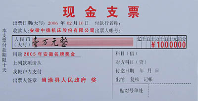 “中德机床”获当涂县2005年度“创建品牌奖”