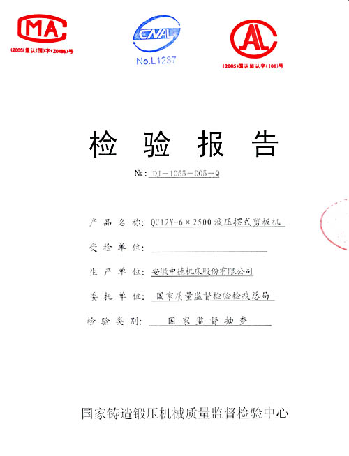 按照2006年第4季度剪板机国度监视抽查实行计划,受国度品德监视查验检疫总局拜托,国度锻造锻压机器品德监视查验中间,于2006年9月23日,对本公司产中德牌液压摆式剪板机停止了现场查验。克日,我公司收到了本次抽检的成果告诉单及查验报告,成果为:及格。